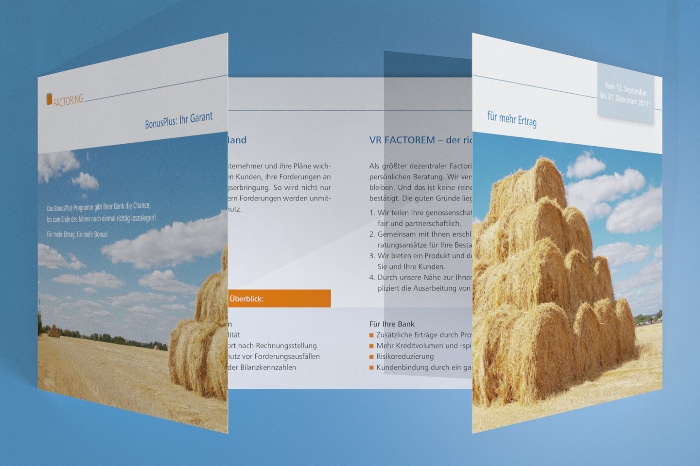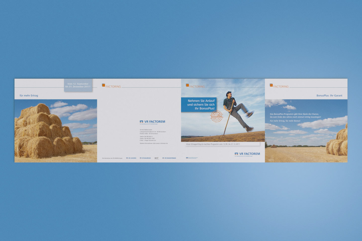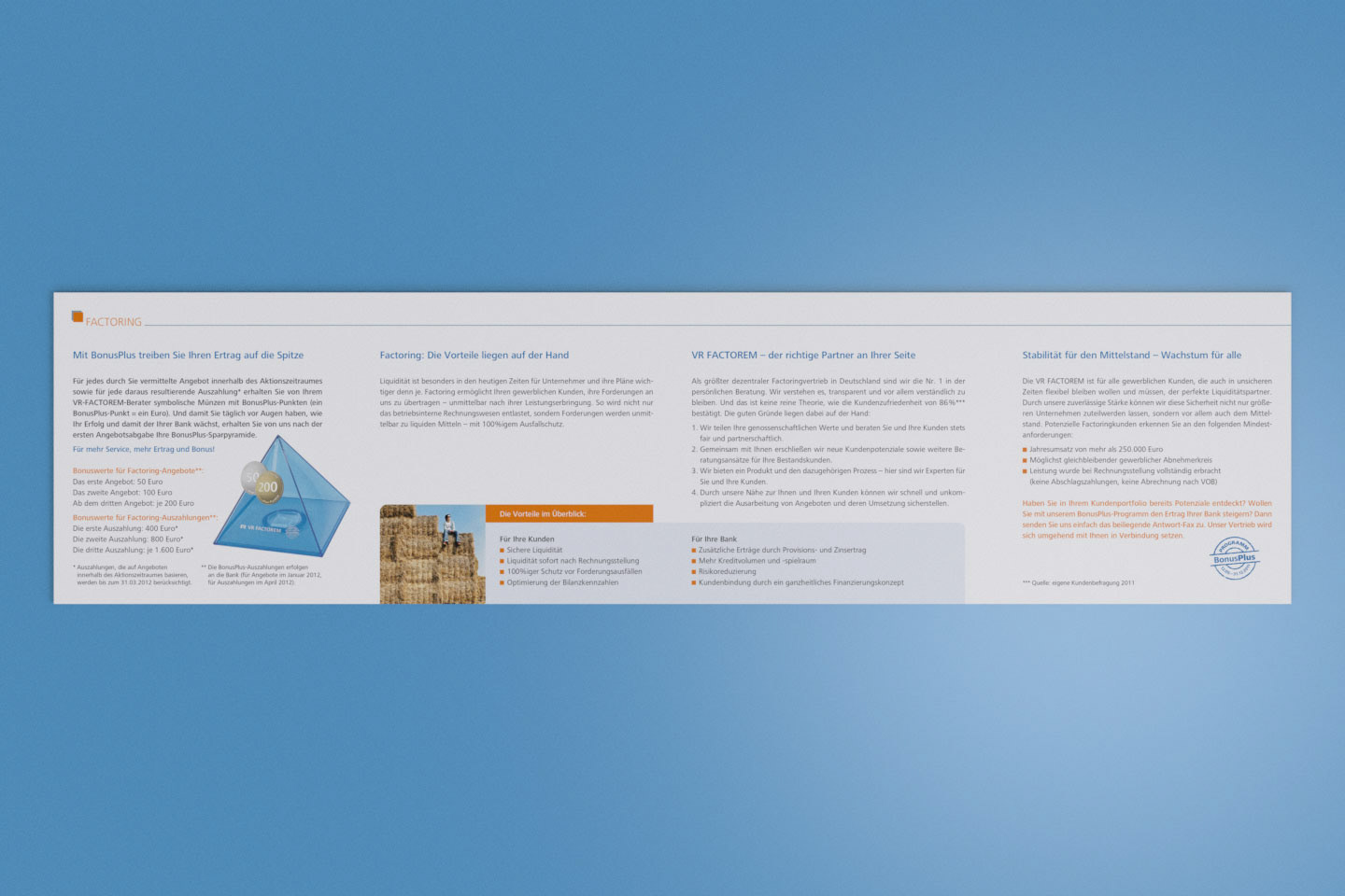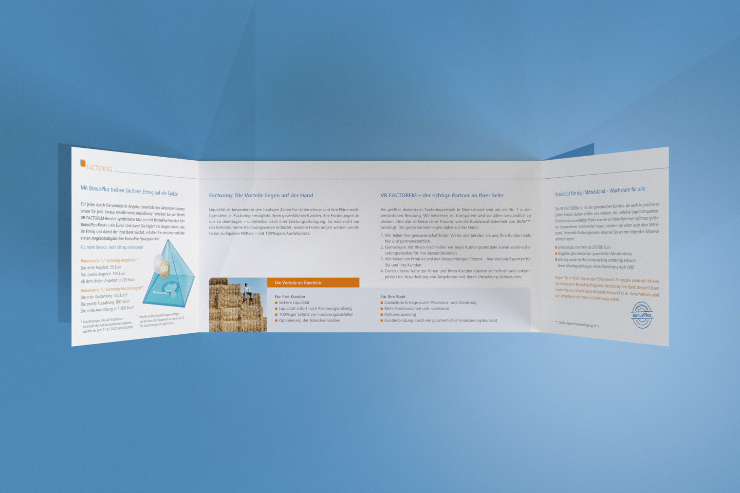 Konzeption und Design eines Folders und passender Werbemittel für eine Bonusaktion für die VR FACTOREM GmbH.